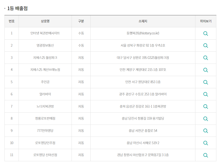 다음은 1073회 로또가 당첨된 판매점입니다.