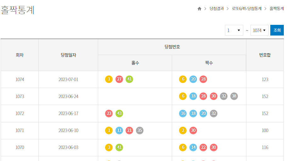 3. 로또 6/45 당첨 통계 - 홀짝 통계