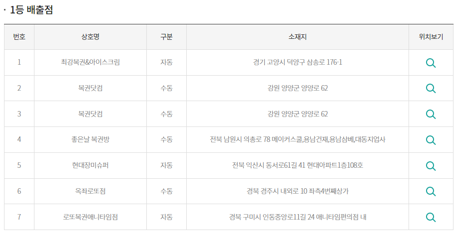 다음은 1077회 로또가 당첨된 판매점입니다.