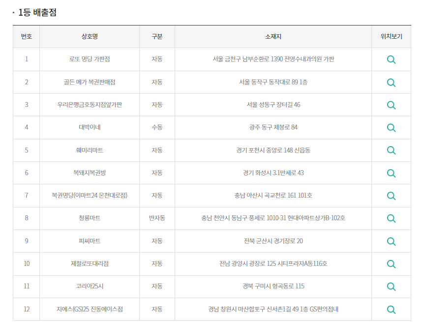 다음은 1078회 로또가 당첨된 판매점입니다.